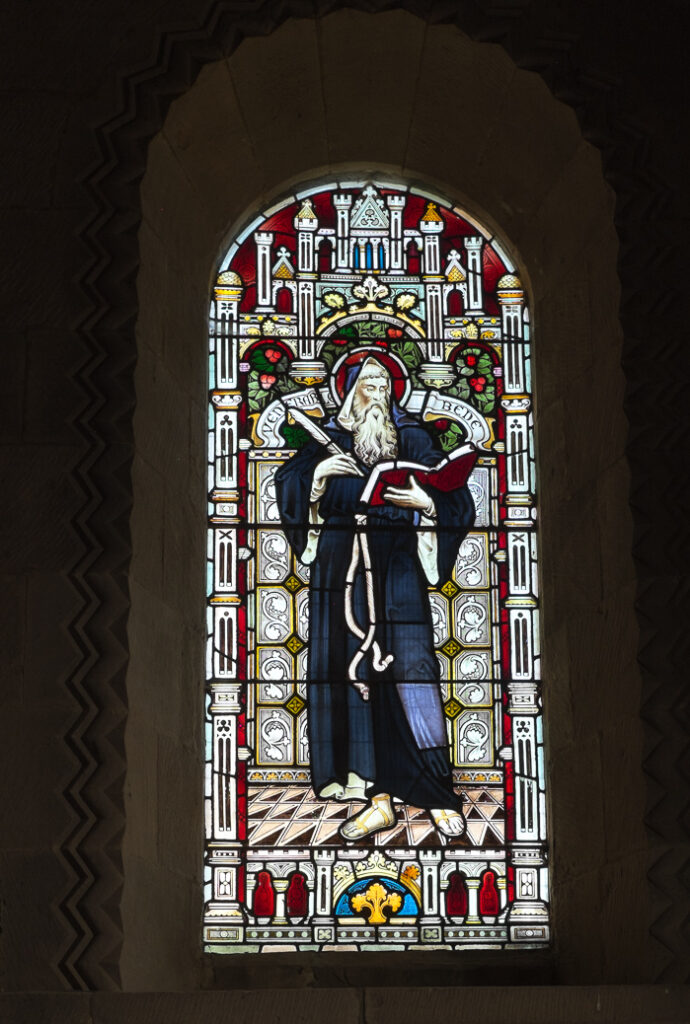 Norham is reputedly the place where, in 635 AD, St Aidan crossed the River Tweed (at Ubbanford) on his way from Iona to establish his monastery on the Holy Island of Lindisfarne. King Oswy made a grant of land for a monastery at Norham in 655 AD, and it’s said that, when a stone church was built on Holy Island, the existing wooden structure was transferred to Norham. Ecfrid, Bishop of Lindisfarne, built a stone church in Norham between 830 and 845 AD. The site of this church, probably to the east of the present church, is now occupied by a clump of yew trees.