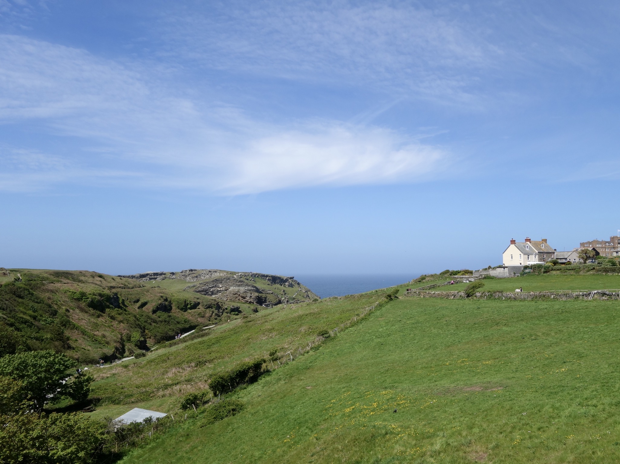 We drove to Bath by way of Tintagel, which is both a town and a promontory with a 13th-century castle ruin. The ruined castle certainly has archaeological interest, but its main draw is its association with the King Arthur legend. According to Geoffrey of Monmouth, Tintagel is where Arthur was conceived. To see the ruin required more time than we had, as it is a good trek out to the promontory, although you can pay to ride in a Land-Rover to the castle ticketing office. In short, Tintangel Castle is a destination, not a casual stop. So, we instead enjoyed the break in our drive by wandering about the village and having a bit of tea before heading on to Bath.