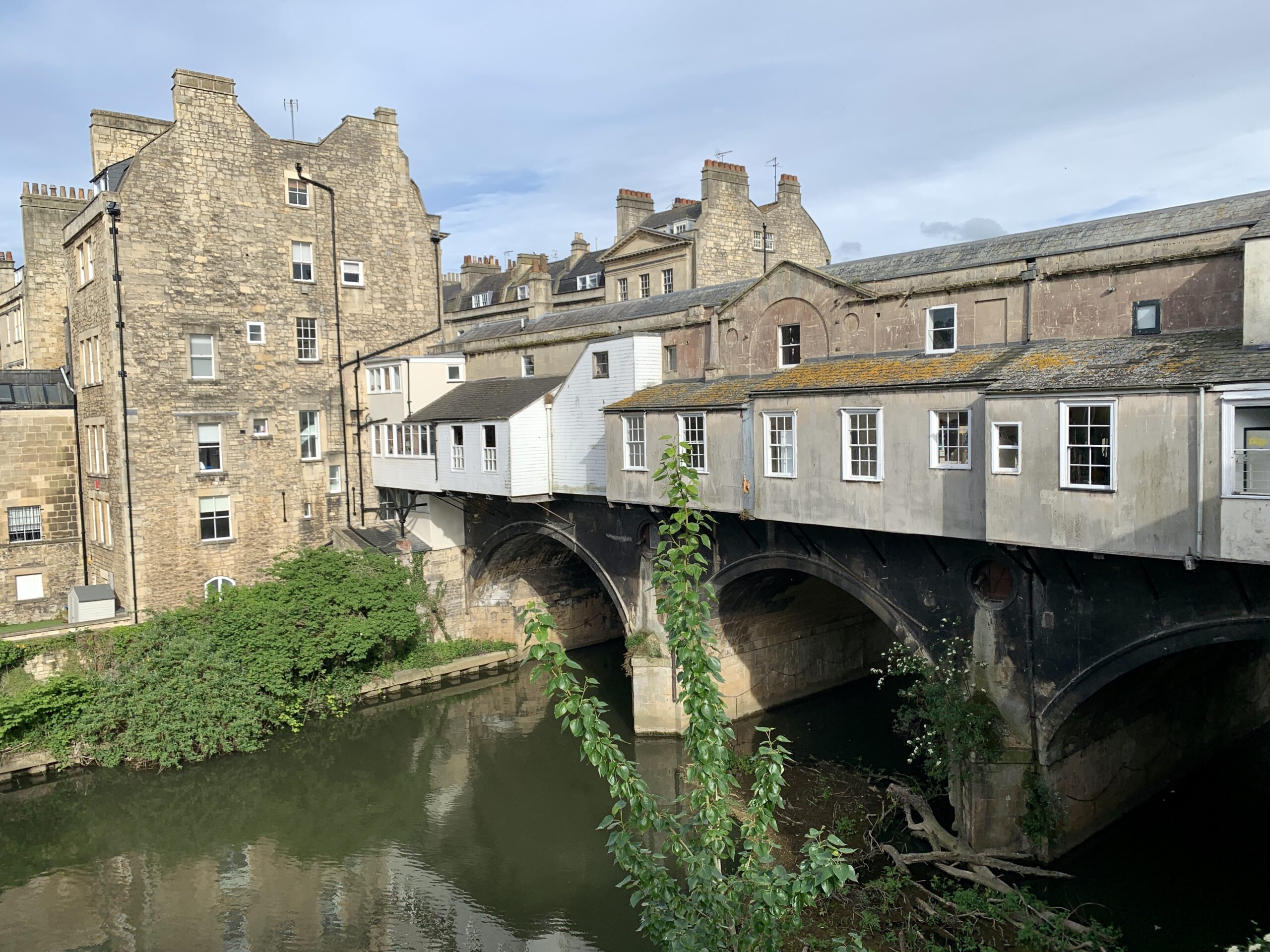 We set out for a basic shop, strolling the broad walks of this 18th-century neighborhood along the way. The grocery store was on the other side of Pultney Bridge, one of the very few remaining inhabited bridges.