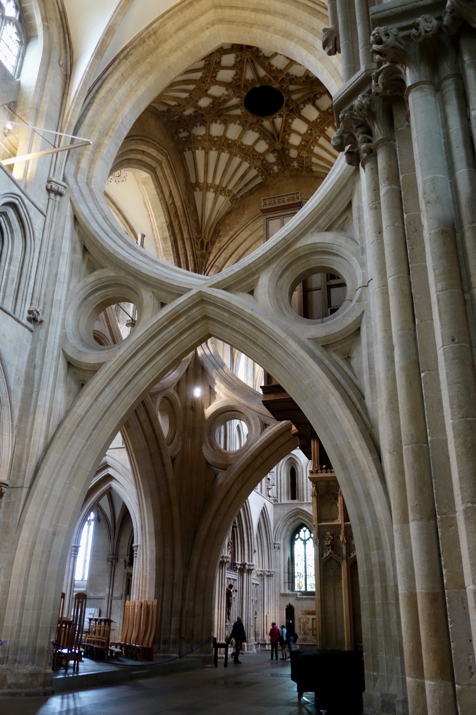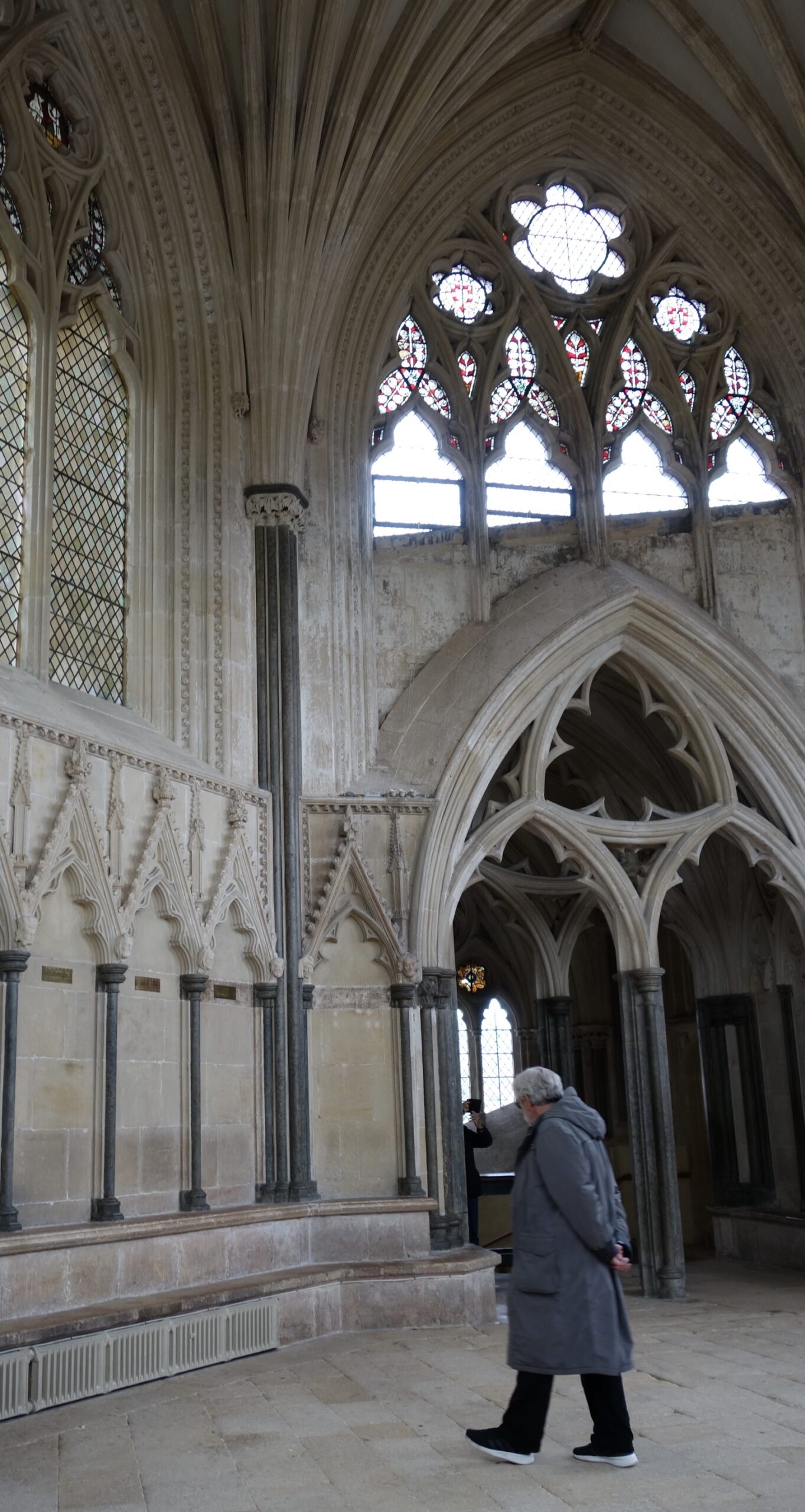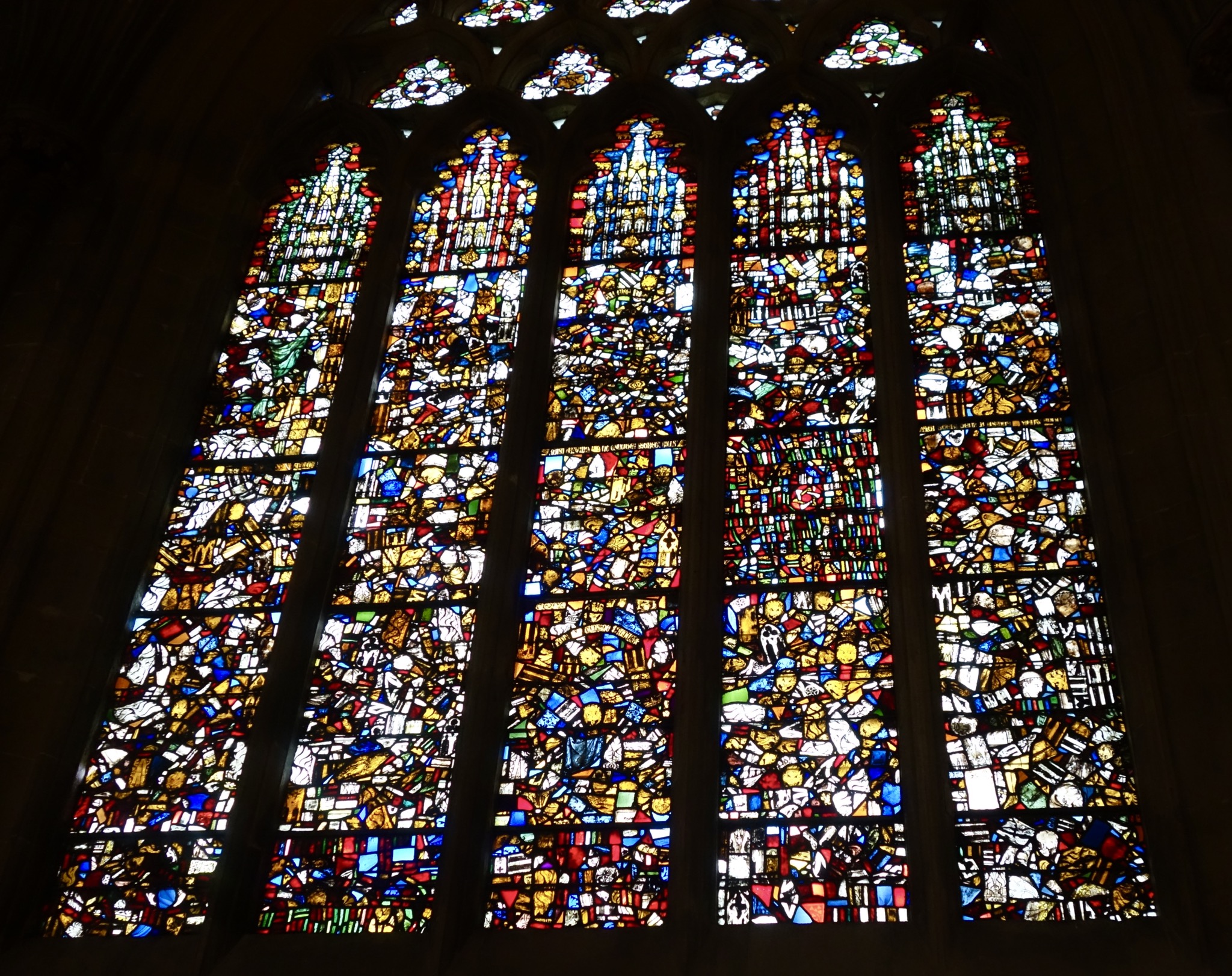 Wells Cathedral is unusual in having several original or near-original windows, such as the Jesse Window. But they have also made the best of fragments scattered in centuries past, such as in this artful collage.