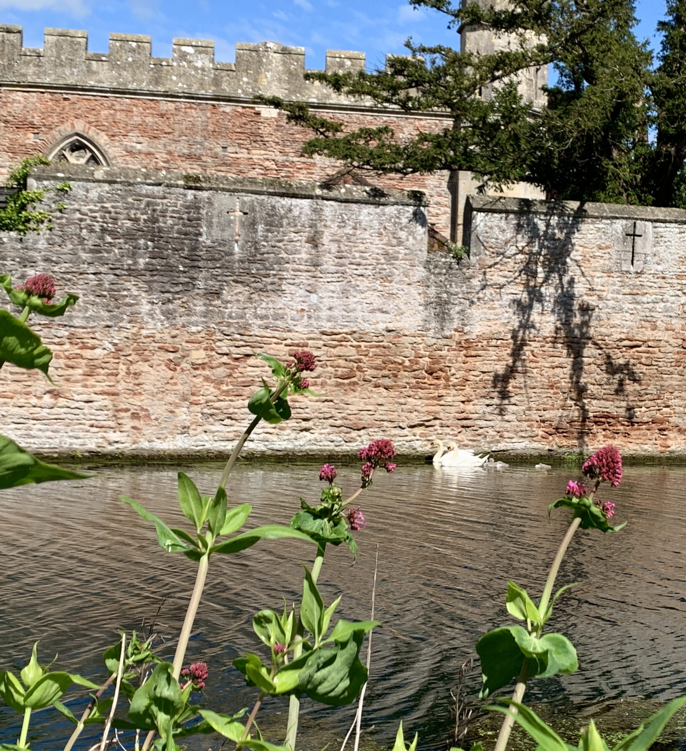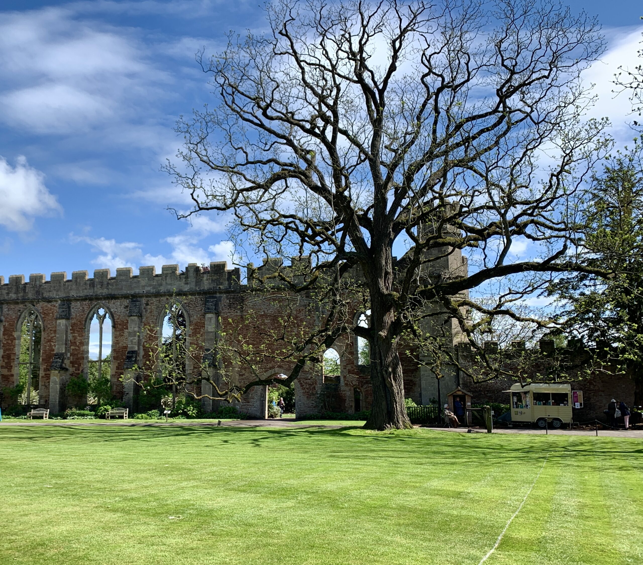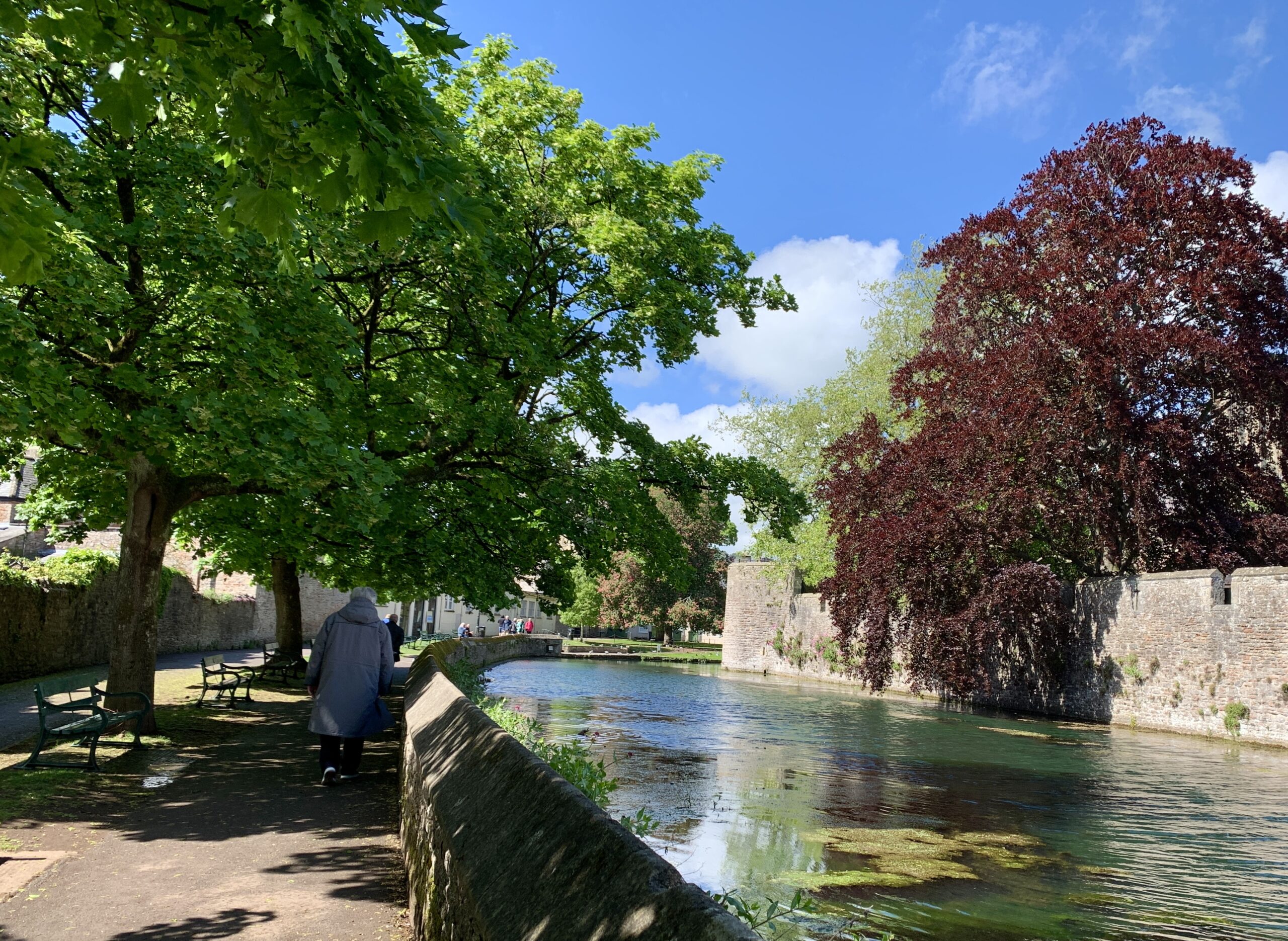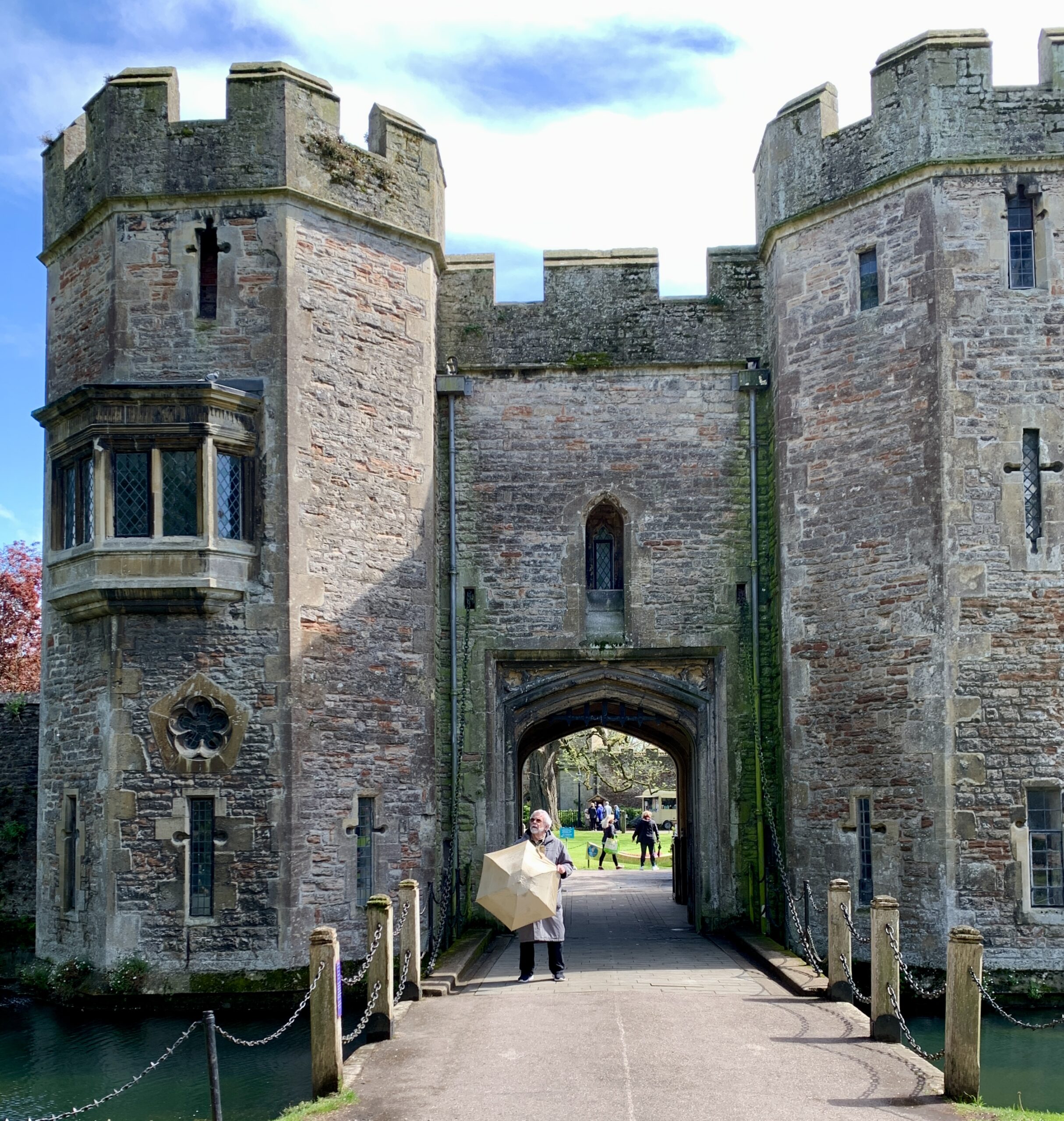 We forwent the chance to visit inside, but enjoyed our stroll around the grounds, the day having turned mild and sunny. Two of the wells after which the town is named are within the compound.