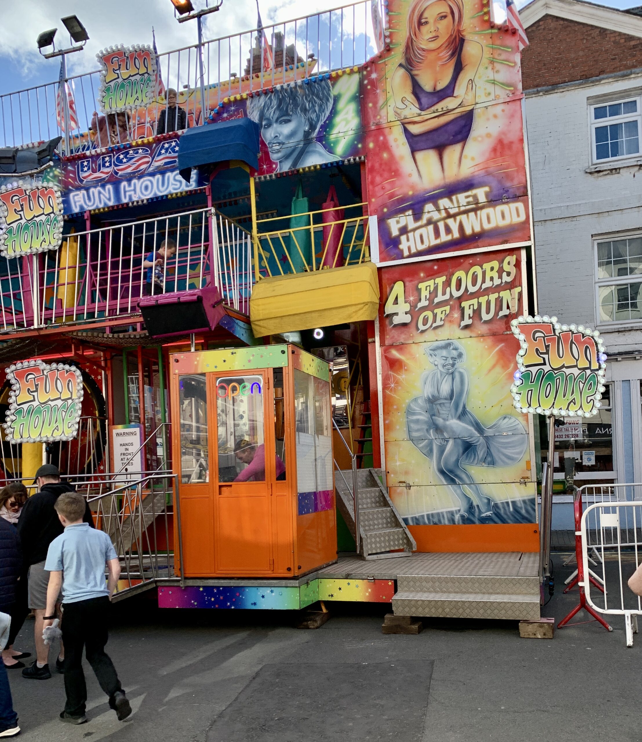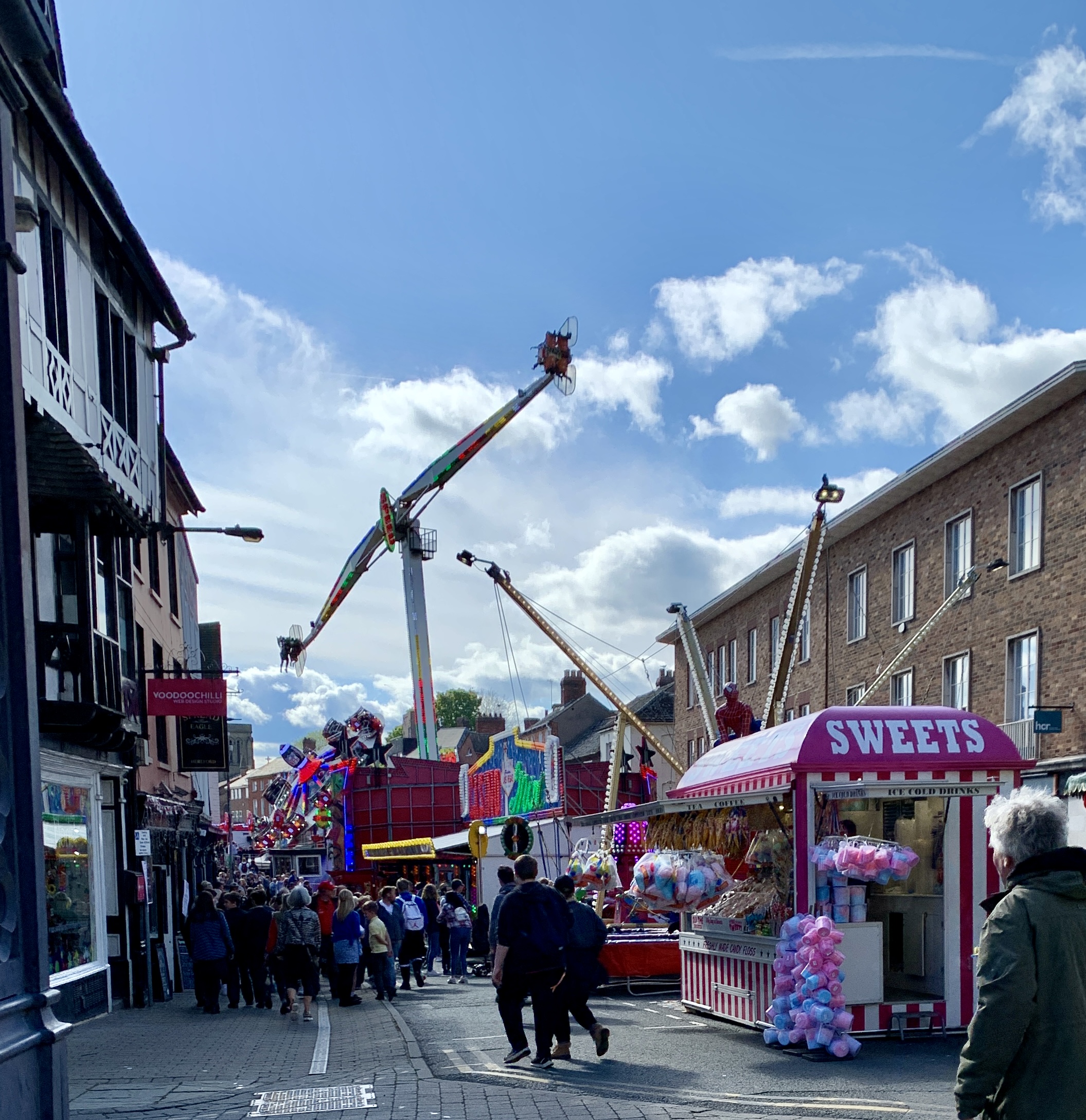 Having enjoyed our refreshments and with a few hours to spare before dinner, we explored the neighborhood. The annual Hereford fair (a Very Big Deal, we were told) was on its last night, and the kids were having a blast. Shrieks filled the air.