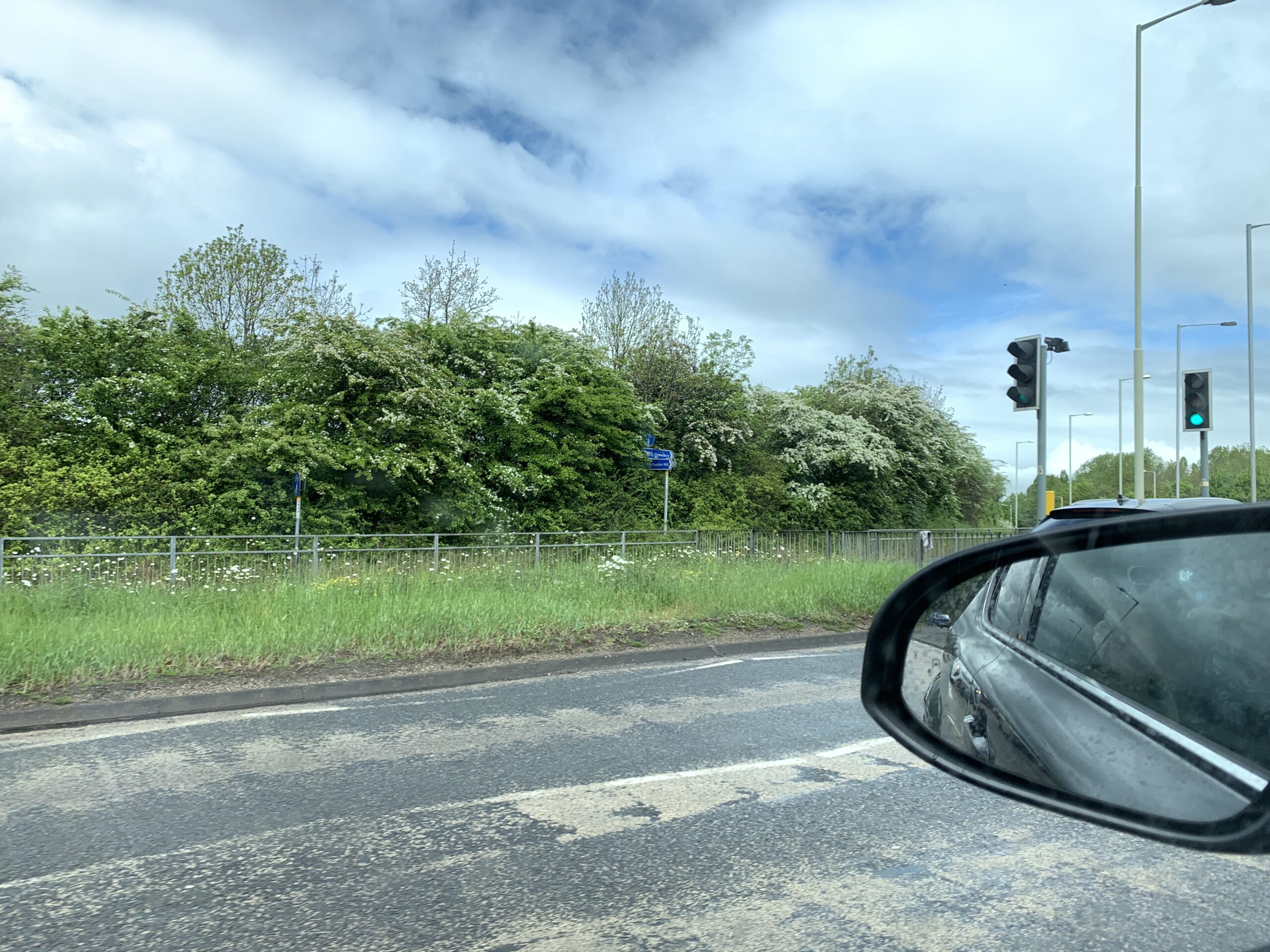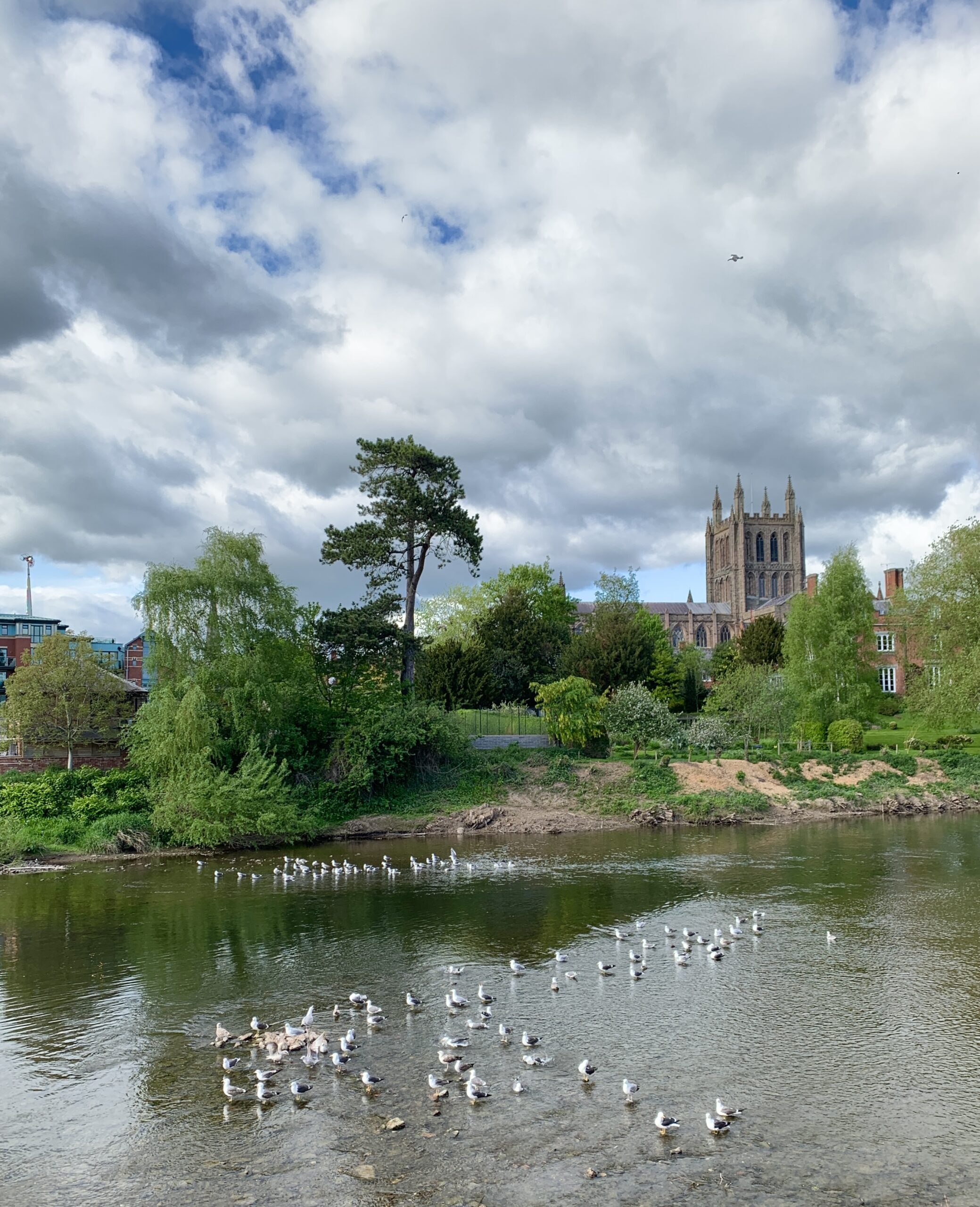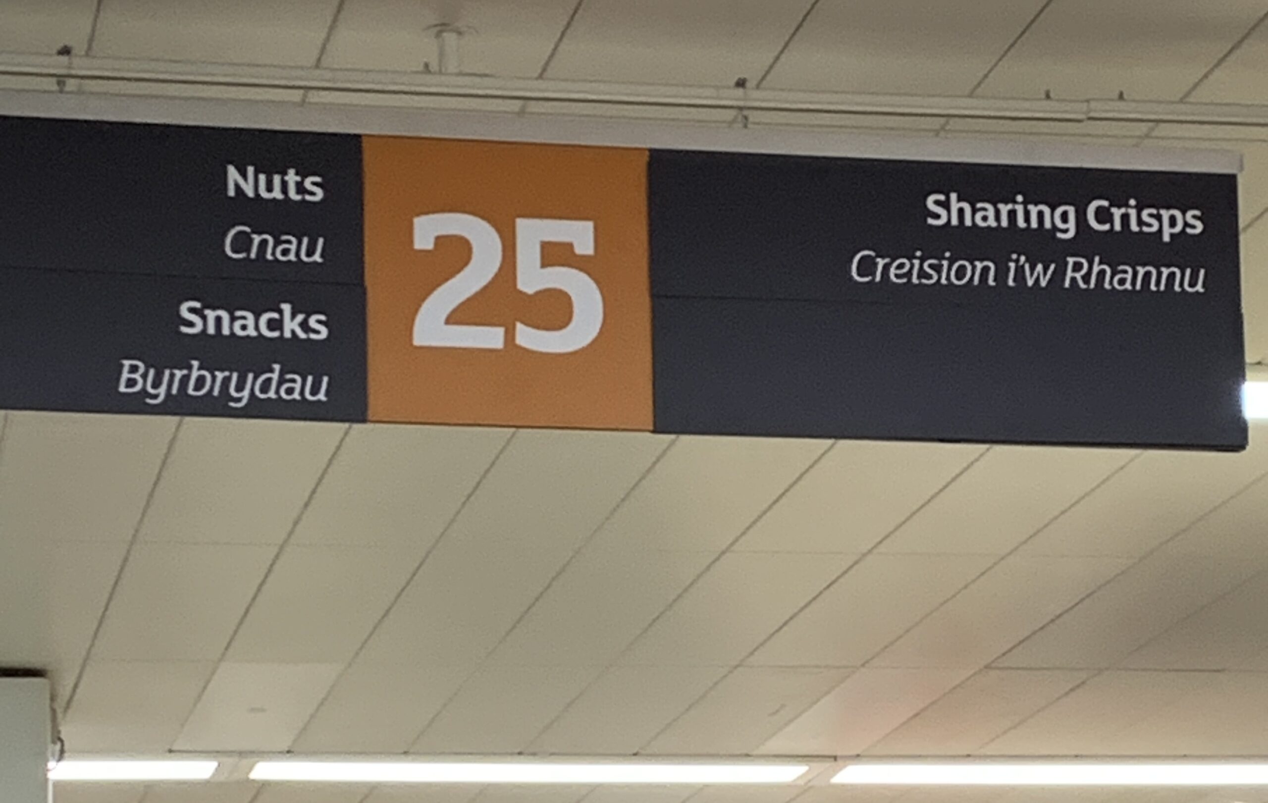 Our route to Hereford (NB: the word has three syllables, not two like the town in Texas) had its charms, despite being on major highways. Hereford is on the river Wye, and getting there we weaved through Wales, stopping for a break and language lessons from a Sainsbury’s: