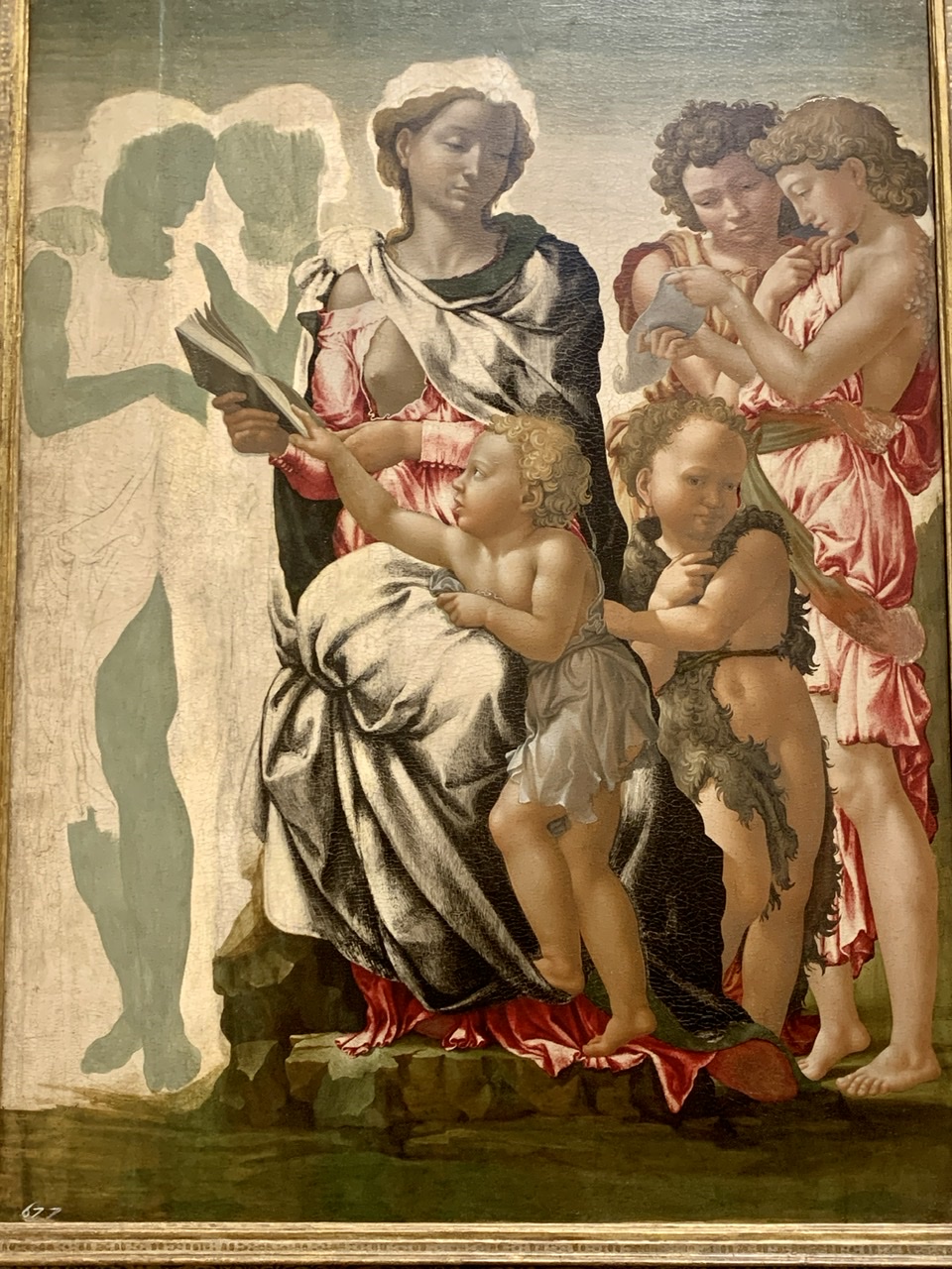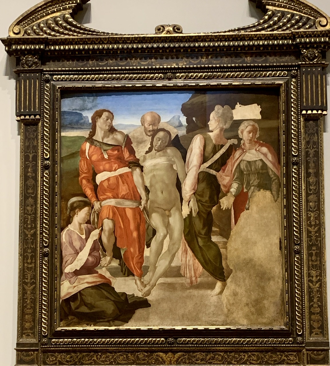 Another unfinished Michelangelo, The Entombment, shows that he learned his painting technique in egg tempera, which he has transferred to oil.