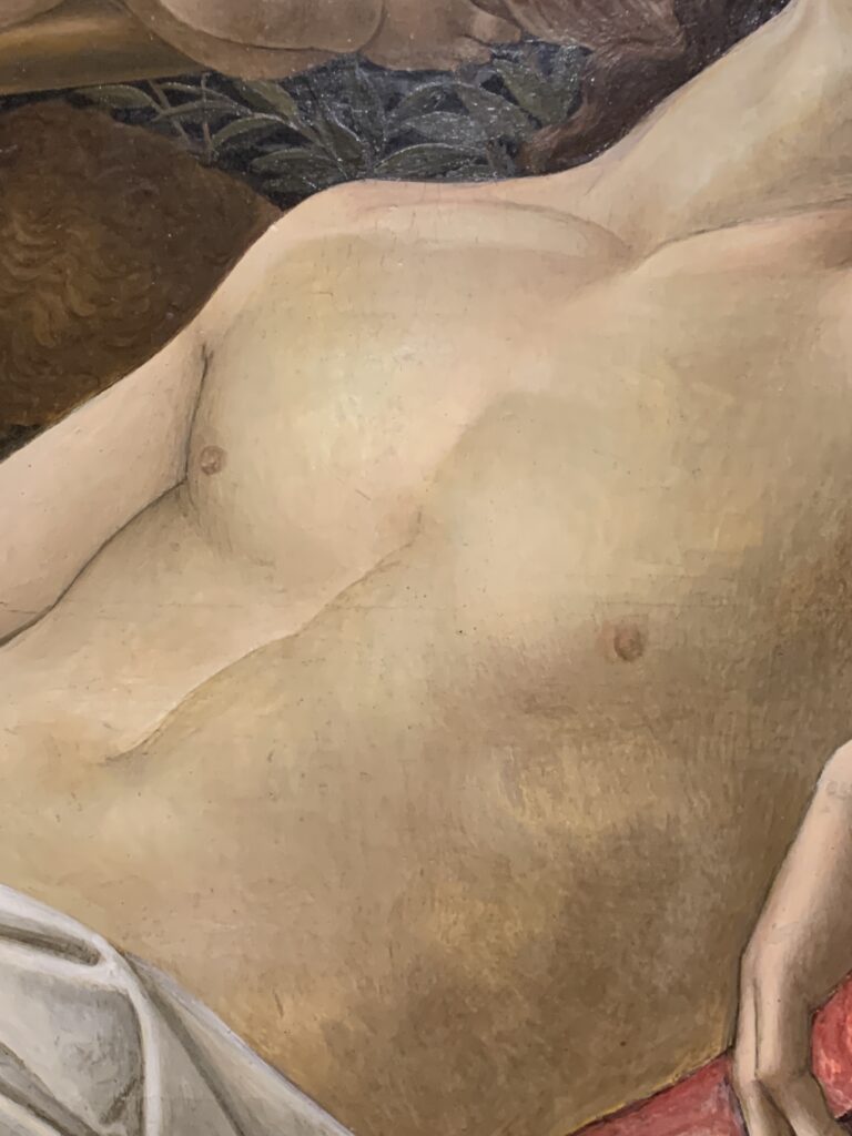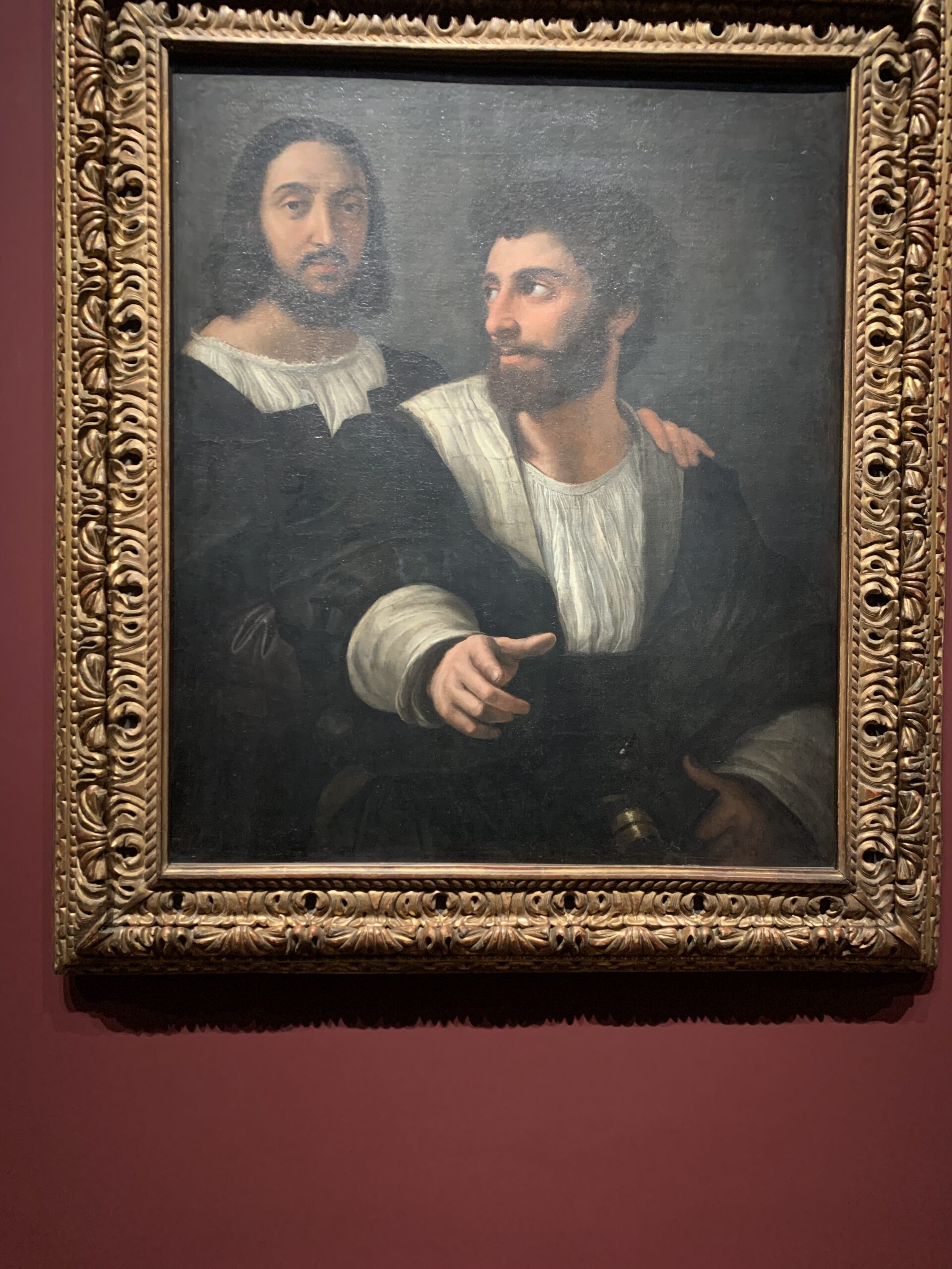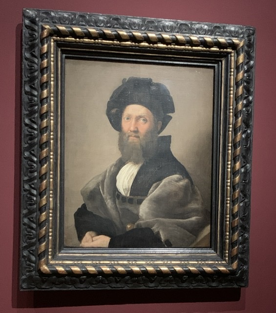 For years, Rafael held no appeal. I knew him chiefly through his Madonnas, which felt insipid and sentimental. Can’t say this exhibit, which drew together Raphael paintings from all over Europe, changed my mind about his religious paintings, though one must admire his sheer mastery of technique. However, a few years ago, at the Louvre, his portrait of Balthazar Castiglione (who wrote The Book of the Courtier) stopped me in my tracks. As did his Self Portrait with a Friend, also from the Louvre.