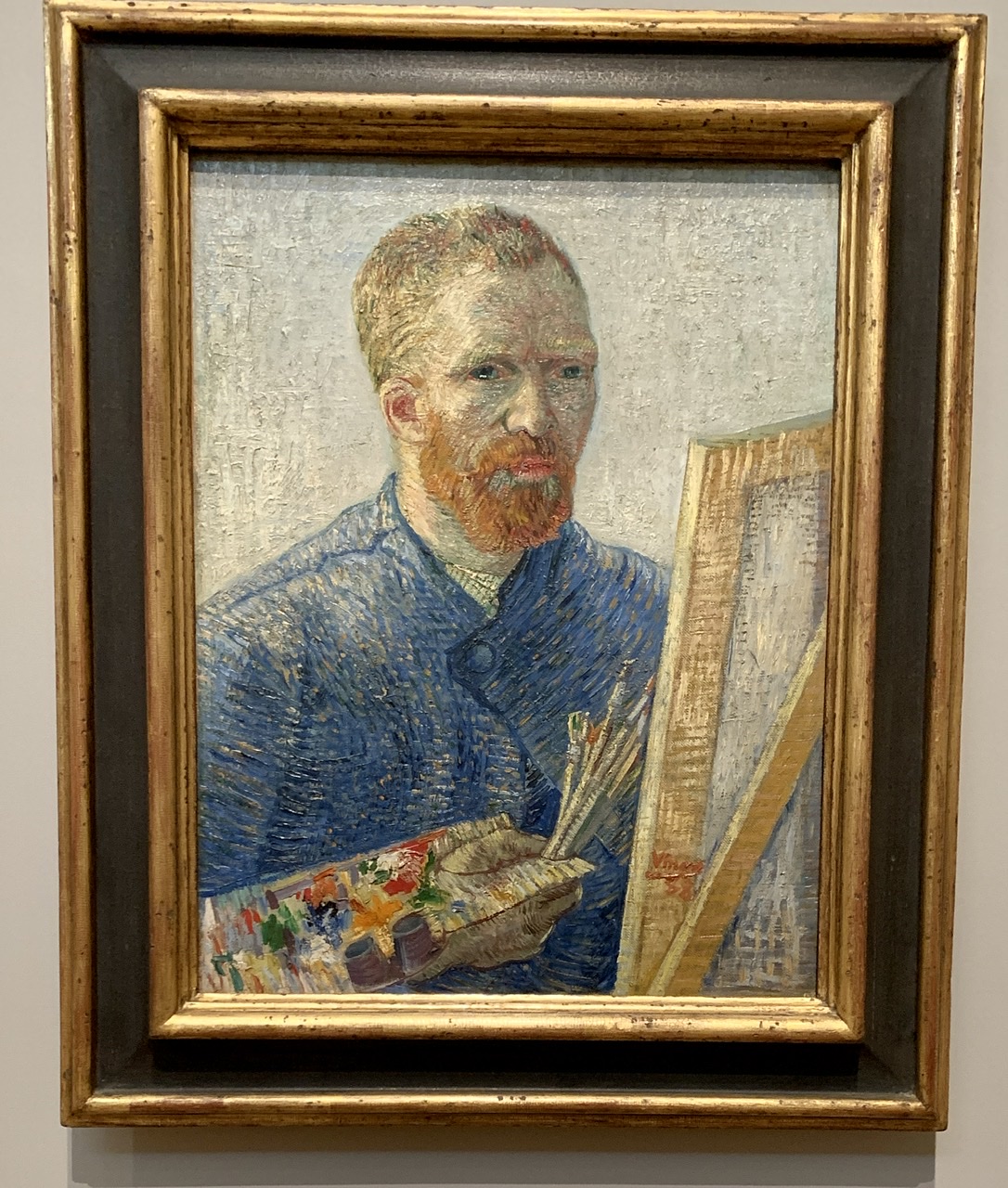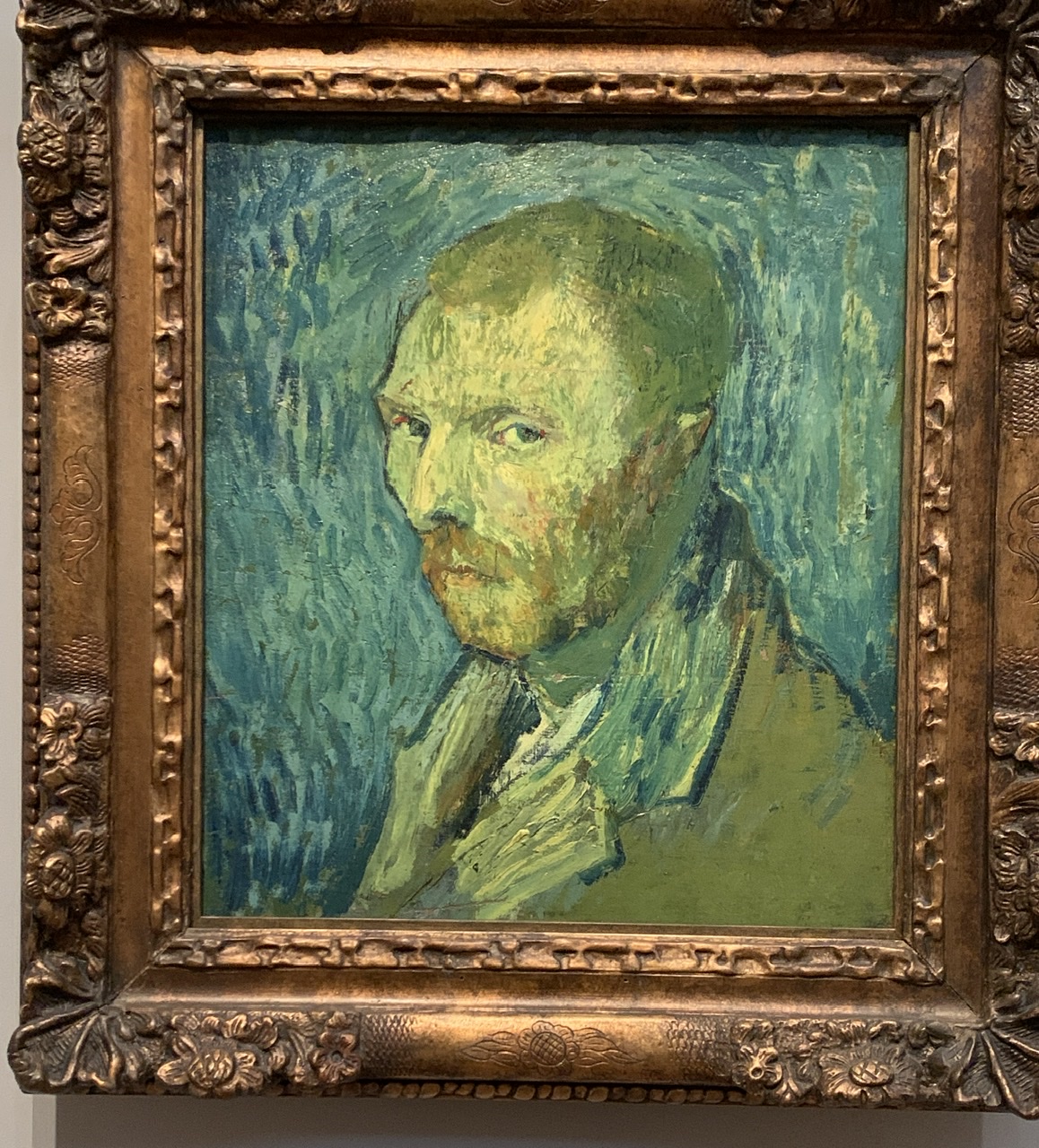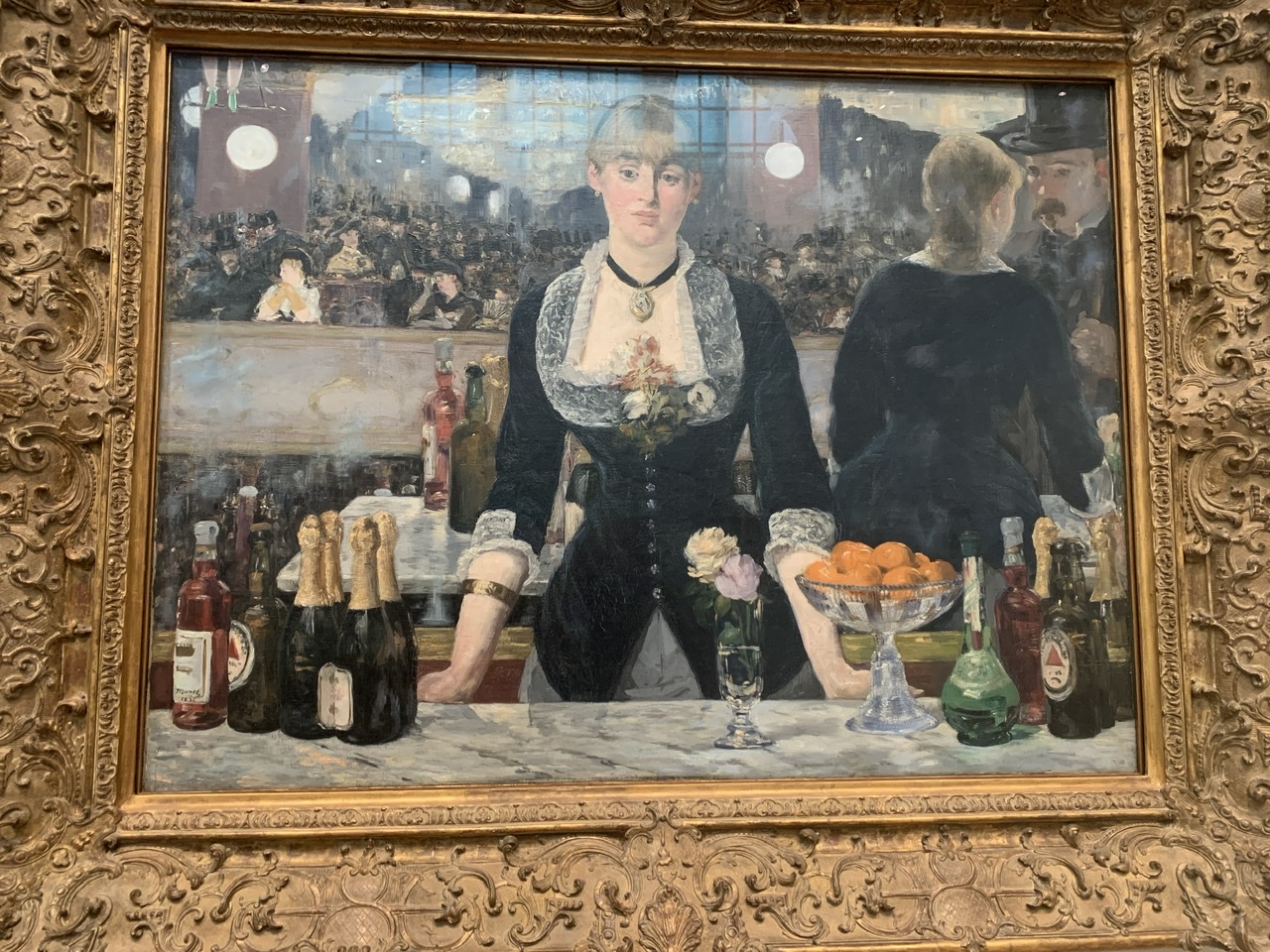 While we waited for our timed entry to the Van Gogh exhibit, we enjoyed perusing their collection of Impressionists, one of the most famous and interesting being A Bar at the Folies Bergères. One has seen many prints/digital copies, but until seeing the actual painting never appreciated how sad she looks. I’d interpreted her expression as boredom, having to serve yet another punter, who’s probably trying to chat her up. I now see depression more than ennui.