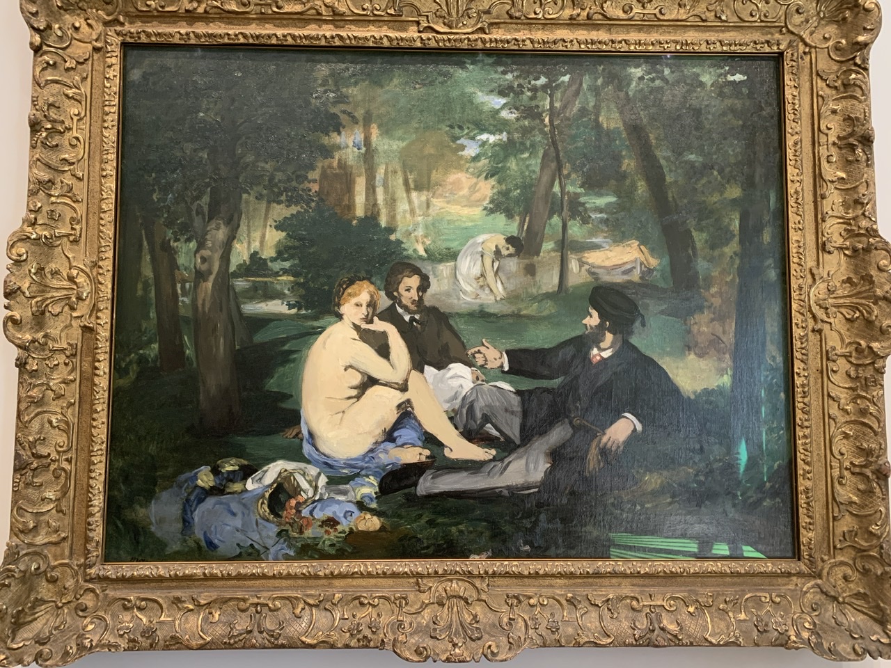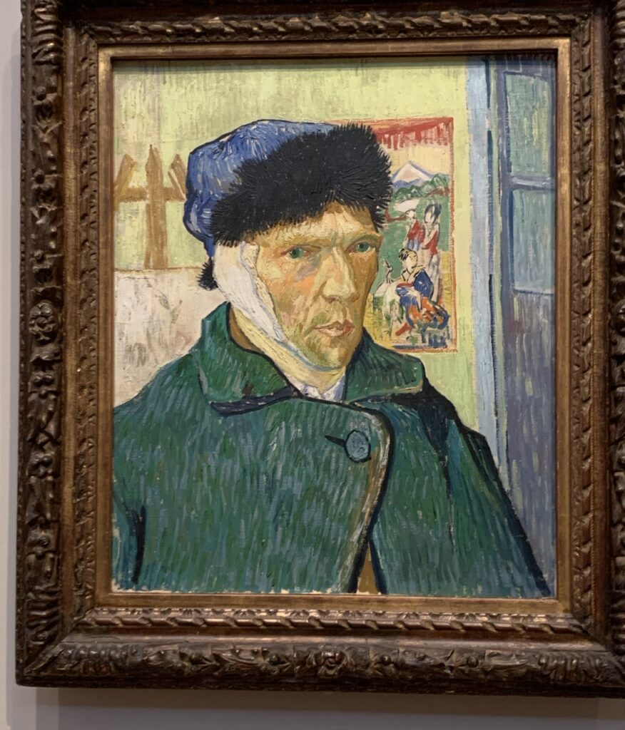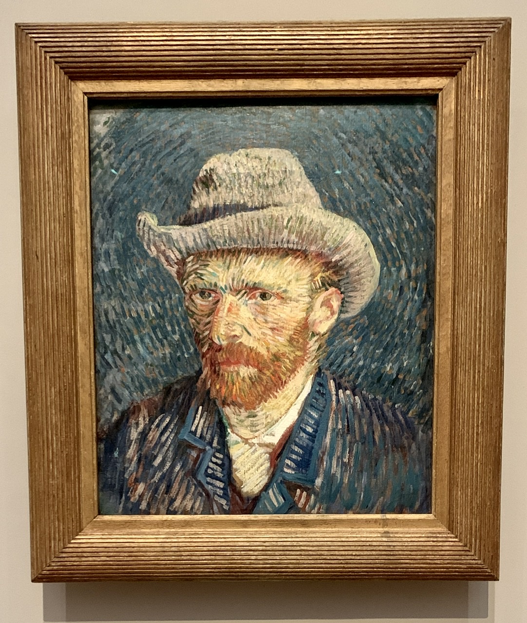 While we waited for our timed entry to the Van Gogh exhibit, we enjoyed perusing their collection of Impressionists, one of the most famous and interesting being A Bar at the Folies Bergères. One has seen many prints/digital copies, but until seeing the actual painting never appreciated how sad she looks. I’d interpreted her expression as boredom, having to serve yet another punter, who’s probably trying to chat her up. I now see depression more than ennui.