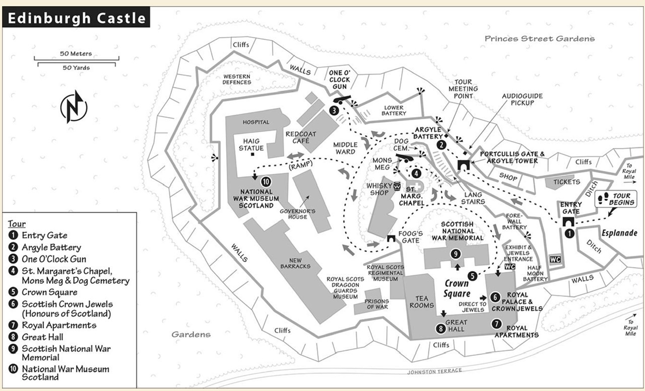 The minuscule St Margaret Chapel looked charming, but was packed with too many people for comfort. We heard the One o’Clock Gun, by which ships in the Firth of Forth once set their maritime clocks. It is loud. Proceeding on to the Royal Palace, we were rushed through the Stone of Scone and Scottish Crown Jewels exhibit.